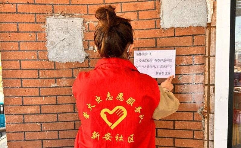 收到诉求后,社区工作人员第一时间前往现场实地查看,核实隐患具体位置与破损情况,粘贴安全隐患提示,快速对接维修人员,安排专业人员上门开展加固、修缮作业。施工过程中,社区工作人员全程跟进,督促规范施工、做好现场防护,高效完成松动铁皮固定、加固处理,彻底消除高空坠落安全隐患。