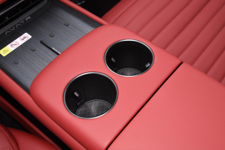 后排更不用愁:2940mm 轴距摆在这,坐进去腿部离前排座椅靠背有两拳多距离,就算前排座椅往后调得比较多,也能轻松翘个二郎腿;头部空间方面,Pro 版因为车身稍高,能有一拳半,Max/Ultra 版虽矮 17mm,但也有一拳,完全不压抑。后排中间地台凸起不高,偶尔坐三个人,中间乘客的脚也能放得舒服,再加上后排有中央扶手和杯架,放个手机、水杯都方便,长途乘坐也不憋屈。